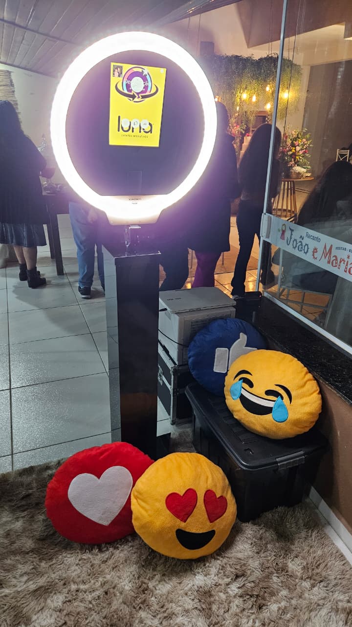 > Captura Vídeos dos convidados no evento em uma base fixa de 85 cm de diâmetro com um braço giratório em 360 graus.